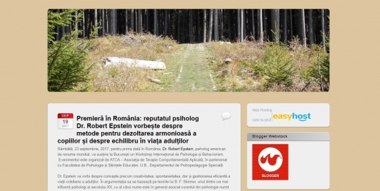Sâmbătă, 23 septembrie, 2017, pentru prima dată în România, Dr. Robert Epstein, psiholog american de renume mondial, va susține la București un Workshop Internațional de Psihologie și Behaviorism. Evenimentul este organizat de Autism Voice, în parteneriat cu Facultatea de Psihologie și Științele Educației, U.B., Departamentul de Psihopedagogie Specială. Citeste continuarea pe cristiannicolau.wordpress.com.