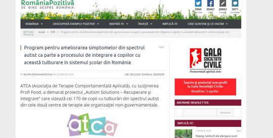 Program pentru ameliorarea simptomelor din spectrul autist ca parte a procesului de integrare a copiilor cu această tulburare în sistemul școlar din România