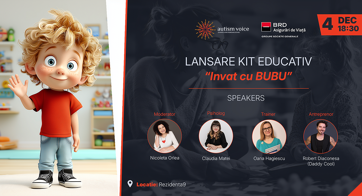Te invităm la Lansarea KIT-ului Educativ „Învăț cu Bubu” – un proiect unic dedicat învățării prin joc, conceput și dezvoltat cu sprijinul BRD Asigurări de Viață, partener care crede în educația făcută cu grijă, inteligență și empatie.