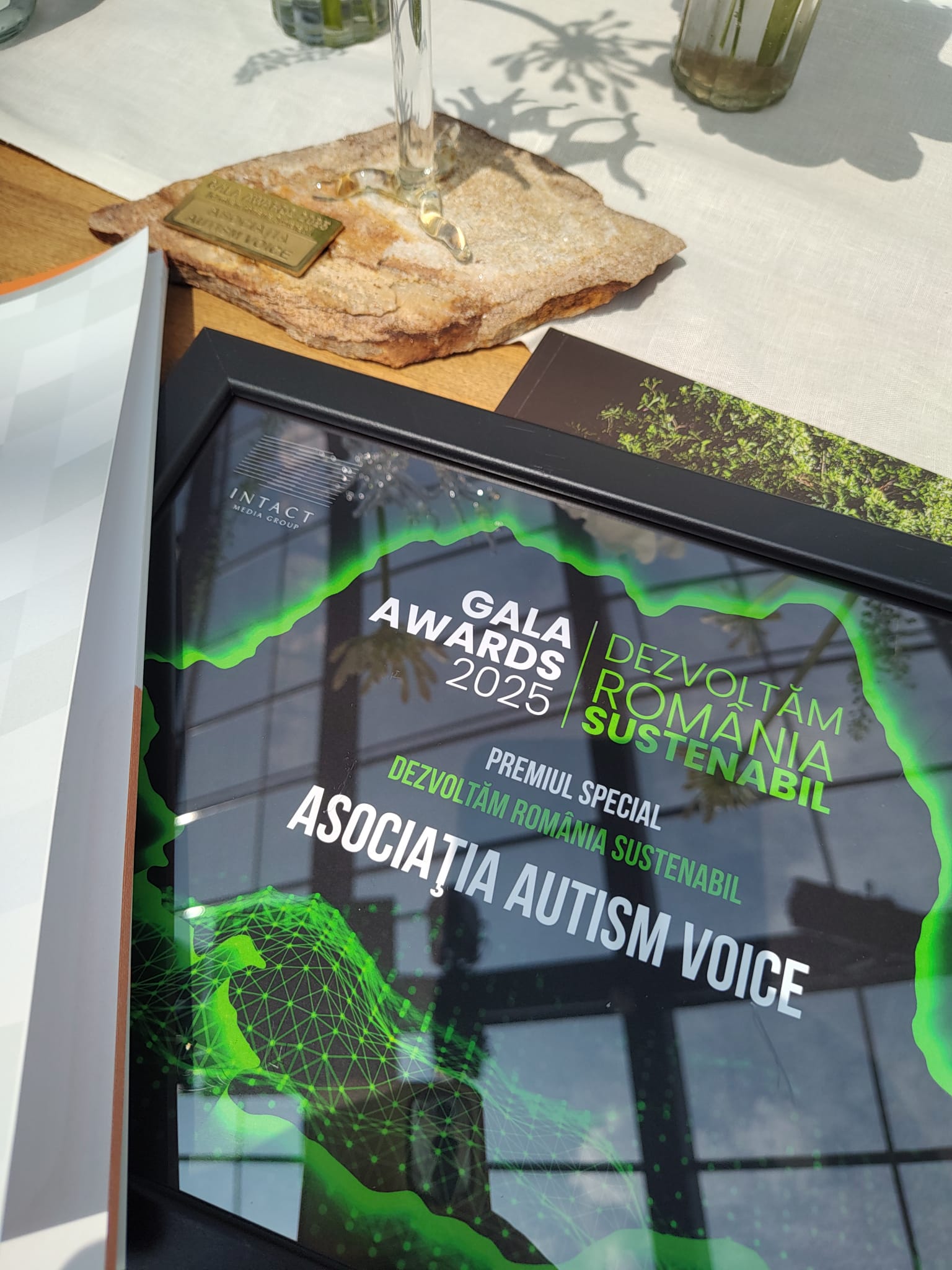 La cea de-a IV-a ediție a Galei „Dezvoltăm România Sustenabil – Împreună pentru un viitor mai bun”, Autism Voice a primit Premiul Special, în semn de apreciere pentru angajamentul nostru continuu în sprijinirea copiilor și tinerilor cu tulburări din spectrul autist și pentru implicarea activă în proiecte sociale cu impact real în comunitate.