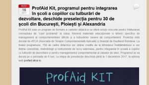 ProfAid Kit, programul pentru integrarea în școli a copiilor cu tulburări de dezvoltare, deschide preselecția pentru 30 de școli din București, Ploiești și Alexandria